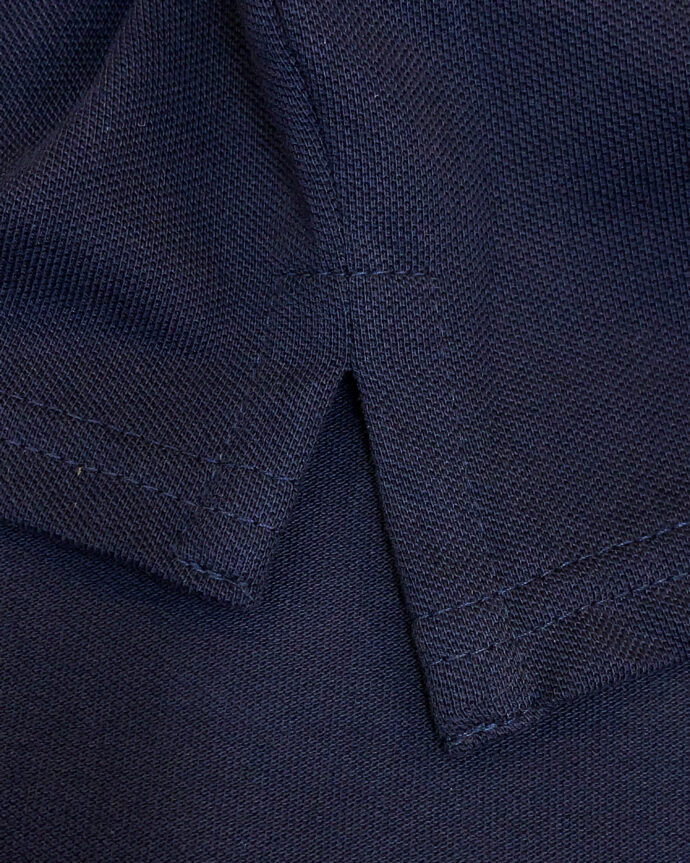 • Flat rib-knit polo collar.
